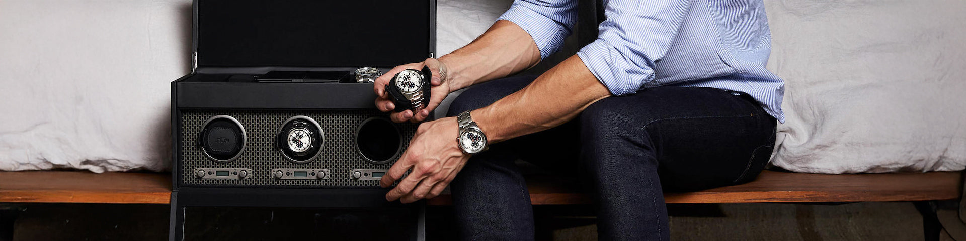 Blake Watch Roll – Black/Grey LeatherBlake Watch Roll – Black/Grey Leather