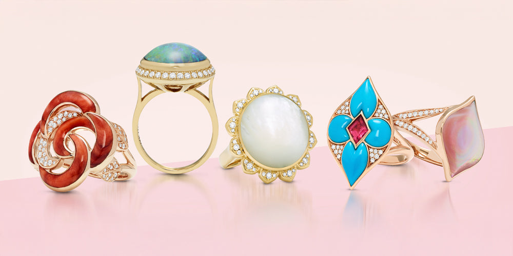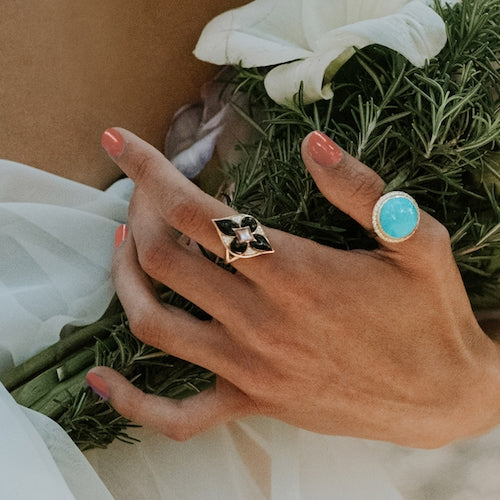 Handcrafted in New Mexico, Kabana Jewelry blends bold, sculptural design with vibrant inlays of mother-of-pearl, opal, and gemstones for a look that’s unmistakably artful.