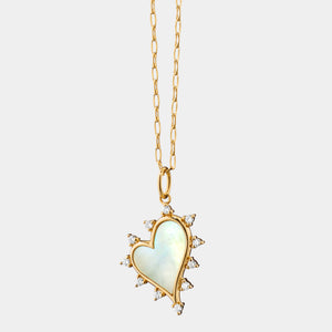 "Love" Heart Necklace with Mother of Pearl and White Diamonds in 18K Yellow Gold